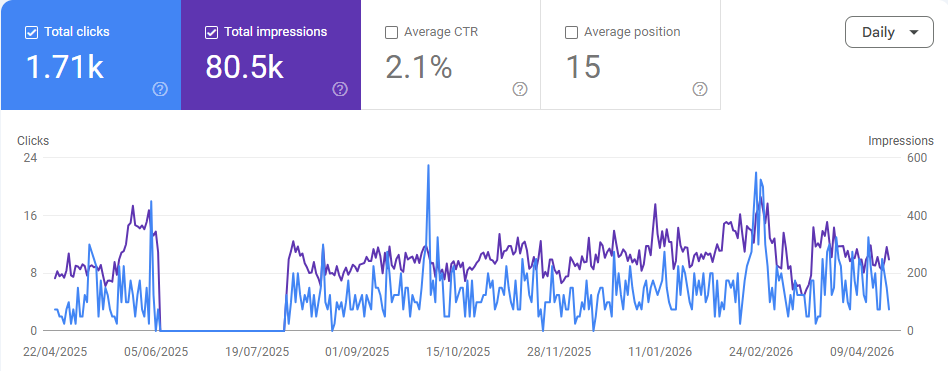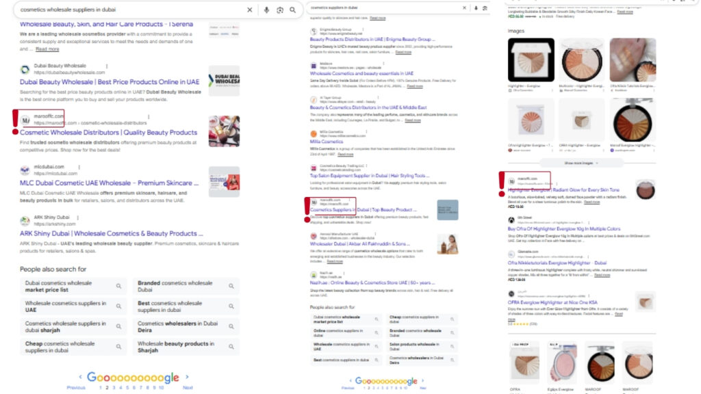 As a result of these efforts, the website achieved approximately 80.5K impressions and 1.71K organic clicks, significantly increasing its presence in search results and driving consistent organic traffic from relevant search queries in the Dubai cosmetics market. Key product and category terms such as “cosmetic suppliers in Dubai,” “Cosmetics Wholesale Suppliers in Dubai,” “Best Liquid Foundations SPF 30,” “Highlighter Everglow,” and “Hard Nail Tips” also began ranking, further strengthening overall discoverability and organic reach.