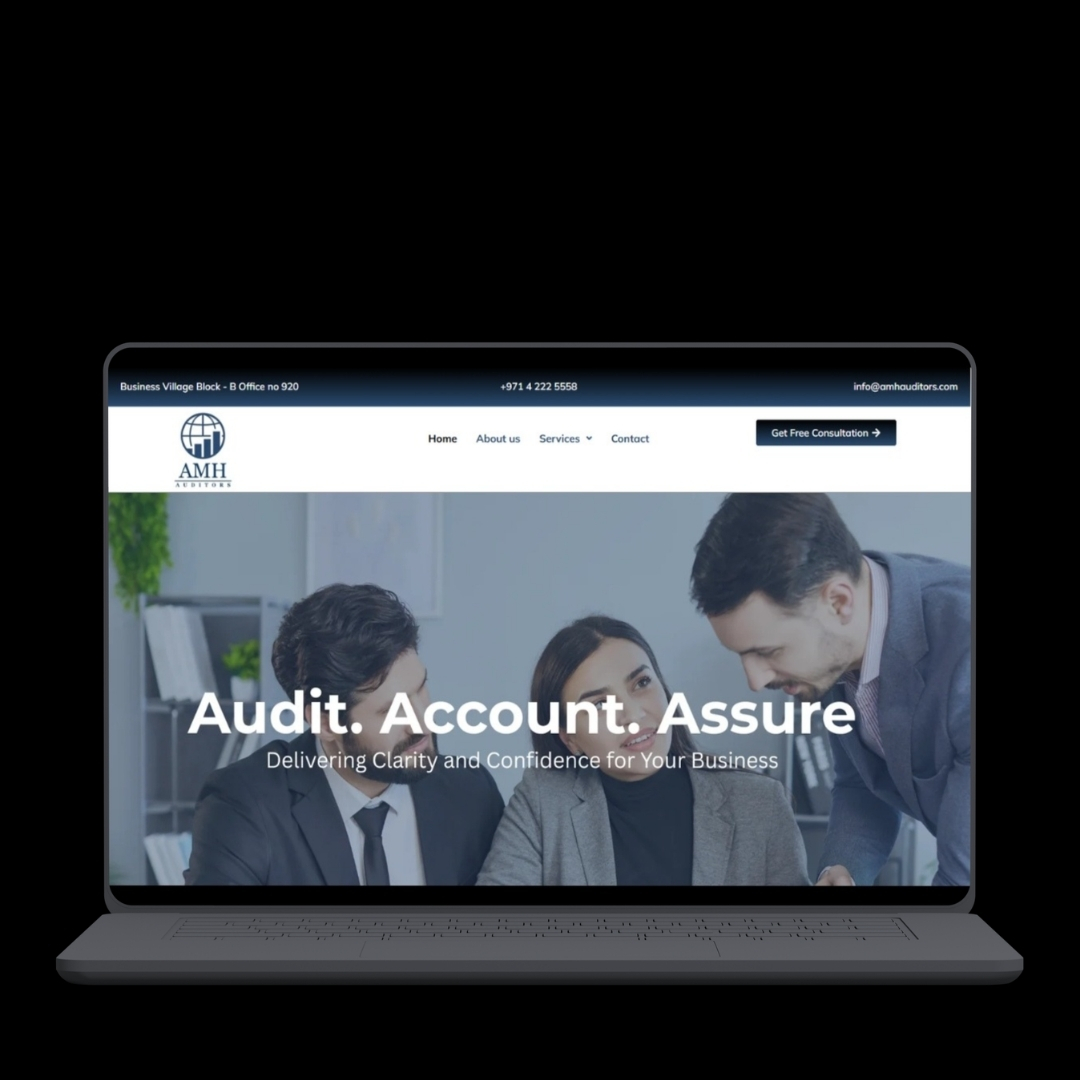 A corporate website for a consultancy firm, showcasing services in VAT, corporate tax, auditing, and business advisory with a clear and structured layout.experience.