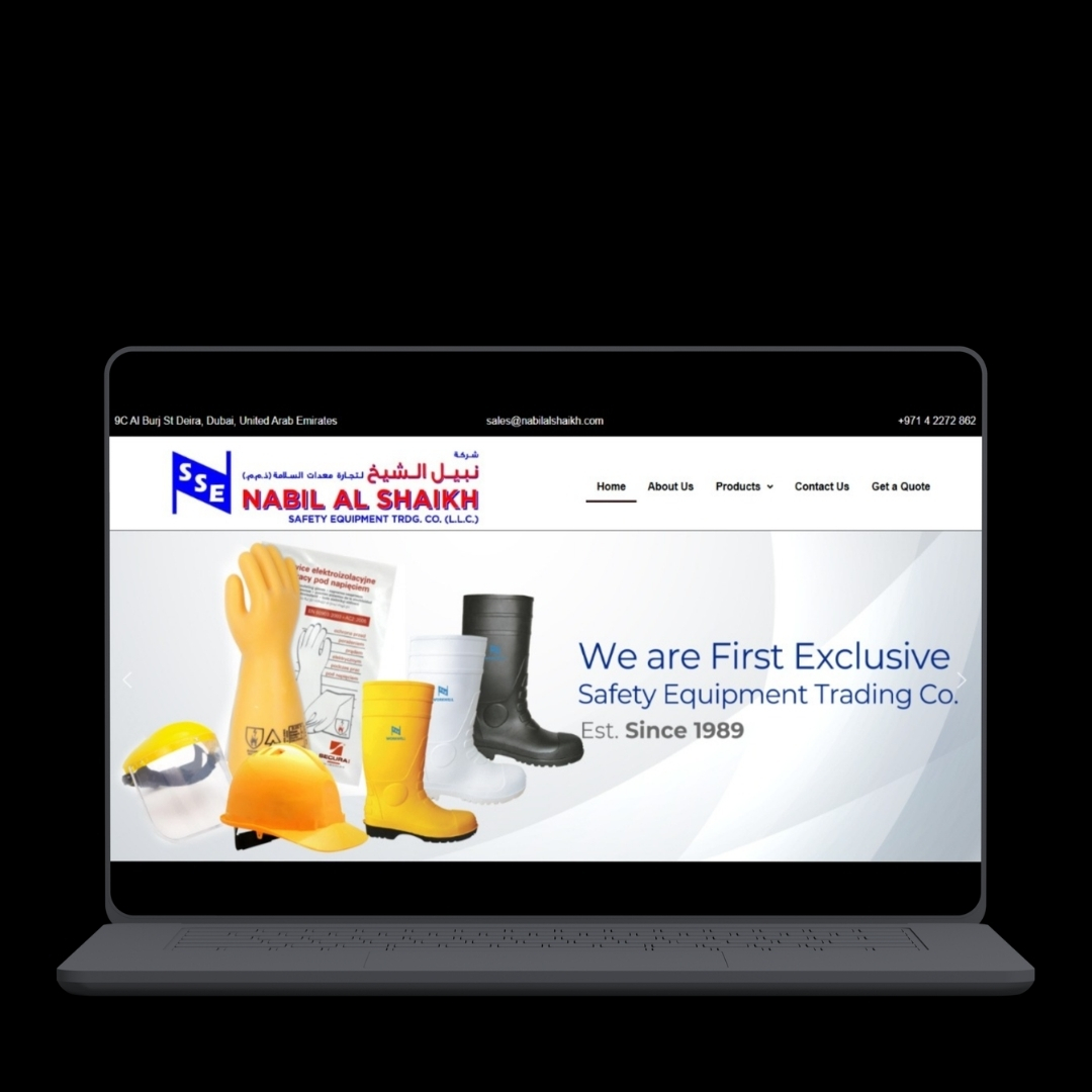A professional website for a safety equipment trading company, showcasing industrial safety products like PPE, firefighting, and protective gear with a structured and user-friendly layout.